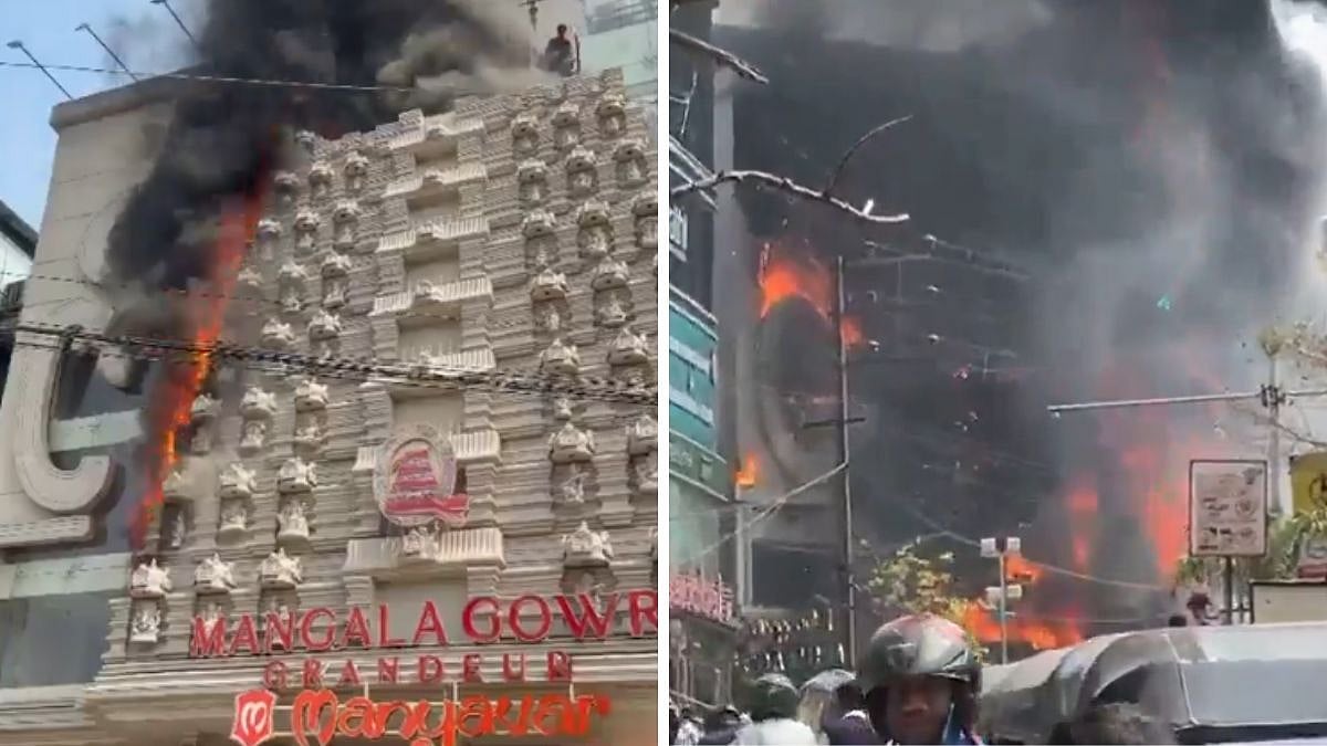 Hyderabad: A major fire broke out at the Mangala Gowri Shopping Mall near the Jubilee Hills Metro Station in Hyderabad on Thursday morning, triggering panic among commuters and local residents due to thick plumes of smoke billowing from the building. Visuals of the fire showed massive blaze engulfing the entire building along with thick black smoke billowing from the burning structure.