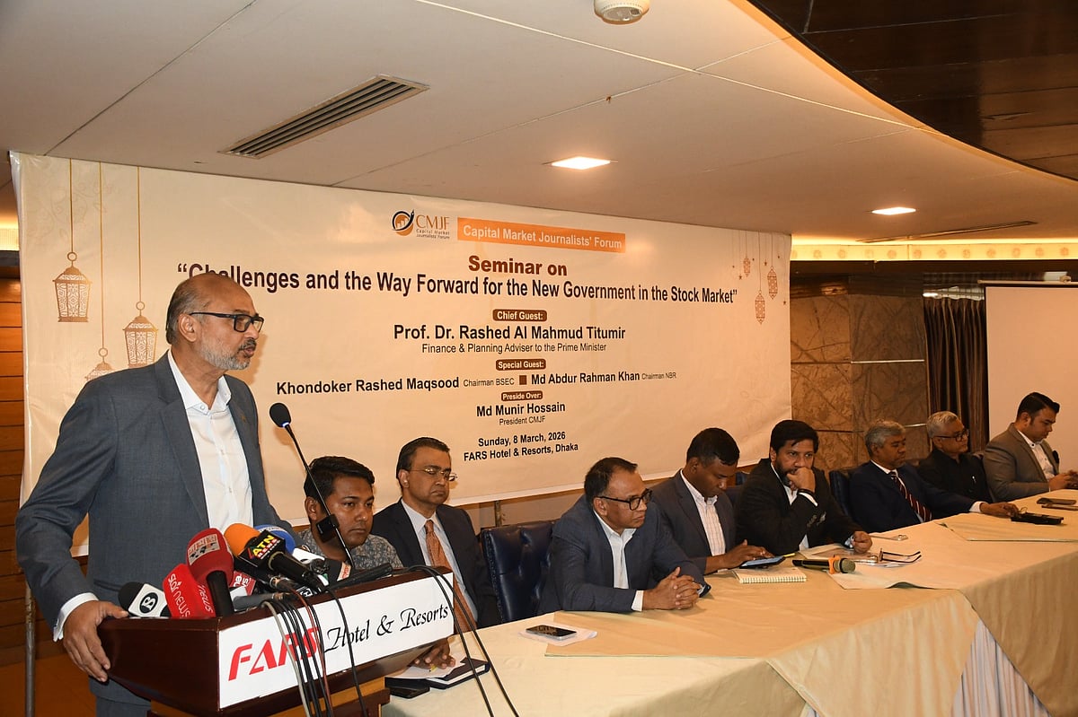 আজ রোববার রাজধানীর পল্টনের একটি হোটেলে আয়োজিত এক সেমিনারে প্রধান অতিথির বক্তব্যে এ কথাগুলো বলেন রাশেদ আল মাহমুদ তিতুমীর। ‘শেয়ারবাজারে নতুন সরকারের চ্যালেঞ্জ এবং করণীয়’ শীর্ষক এ সেমিনার আয়োজন করে পুঁজিবাজার-বিষয়ক সাংবাদিকদের সংগঠন ক্যাপিটাল মার্কেট জার্নালিস্টস ফোরাম (সিএমজেএফ)।