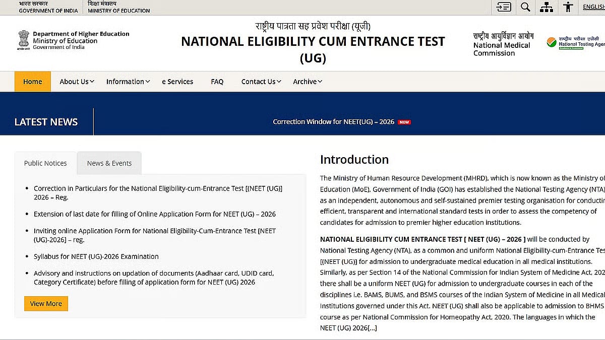 NEET UG 2026 Correction Window: According to the National Testing Agency (NTA), the NEET UG 2026 correction window will end today, March 14, 2026. Candidates who have not yet registered can update their information on the application until 11.50 PM today.