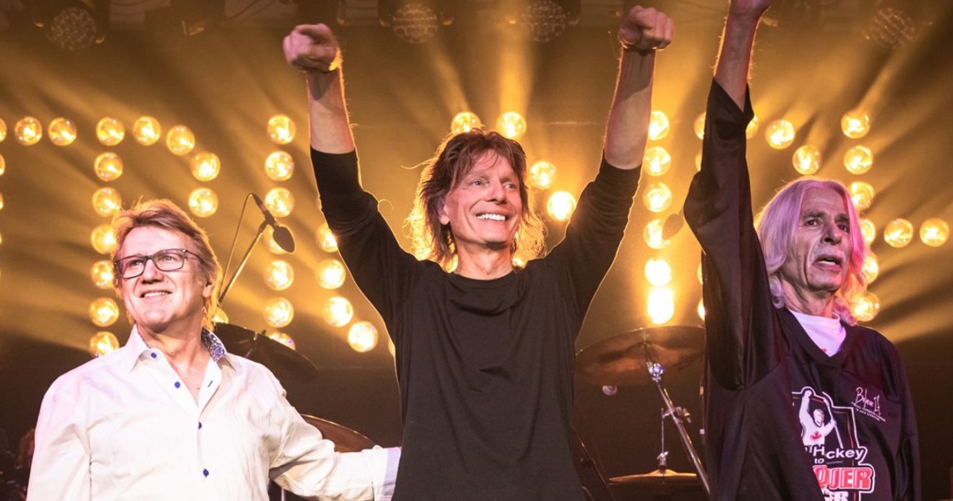 Moore says it’s hoped original bassist-keyboardist Mike Levine, 76, who missed the Edmonton NHL performance due to a doctor’s appointment, “will perform at select shows,” as the band states on triumphmusic.com.